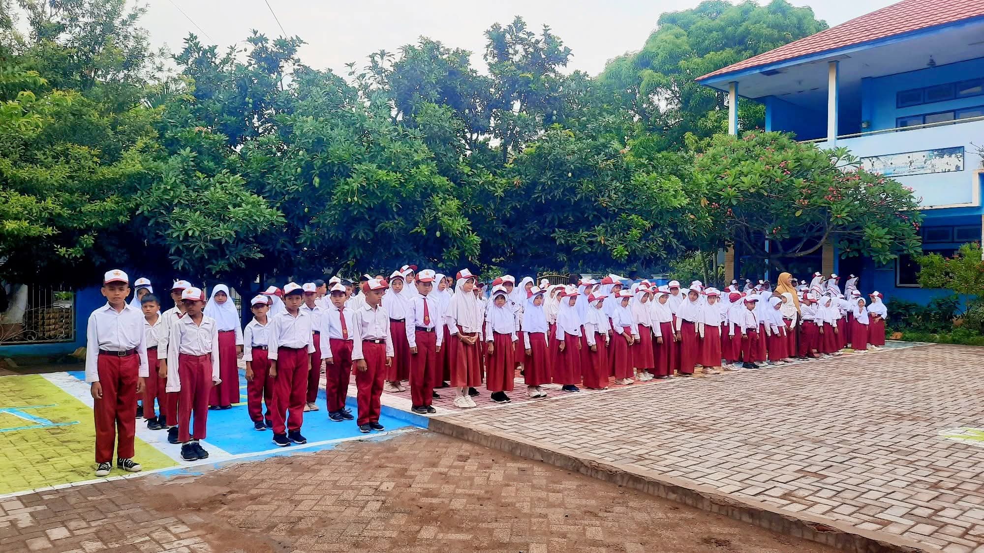 Pelaksanaan upacara bendera hari ini berjalan secara hikmat dibawah pembina Ibu Rini ernasari, S.Pd.I